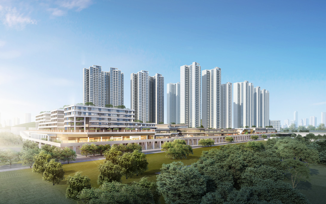 星汇城项目位于广州市黄埔区与增城区交界处,为地铁14号线和21号线大架修车辆段上盖,是由镇龙地铁站、穗莞深城轨站、镇龙公交总站组成的一体化交通枢纽的重要组成部分。项目南侧为广汕公路,西侧连接九龙大道,车行交通便利。东侧和北侧有山景环抱,自然条件优越。本项目主要面向年轻家庭客群,依托TOD的独特优势,以“年轻家庭的理想生活剧场”为线索,打造具有百米纵深独享园林的居住区、百米活力商业街,和覆盖幼儿园、小学的教育配套。